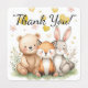 Add a charming finishing touch to your celebration with these adorable woodland animals party favor labels. This set features a sweet bear, fox, and bunny sitting among soft pastel watercolor florals, along with coordinated designs that include “Thank You” and “Benjie is Three” text.