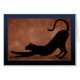 La silhouette d'un chatte branché qui s'étire contre un arrière - plan âgé. Une riche frontière bleue complète le look.
