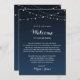 Carte de bienvenue de mariage Nuit étoilée bleue de la marine céleste.