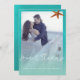 Carte moderne de remerciement de mariage sur la plage avec étoile de mer bleu aqua, votre photo et écriture calligraphique. Parfait pour un mariage moderne sur la plage, la mer, le bord de mer, la côte, les tropiques, la marine ou une destination. Personnalisez-la avec vos photos (portrait) et votre texte !