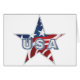 Etoile conçue avec les étoiles et rayures du drapeau américain avec texte argenté USA.