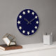 Etoiles blanches, horloge Arrière - plan bleue Une horloge avec étoiles blanches comme marqueurs numériques. La couleur arrière - plan est bleu marine, mais vous pouvez la customiser à la couleur de votre choix en cliquant sur le bouton "Customiser" et en choisissant "arrière - plan" dans le menu déroulant Modifier.