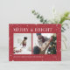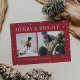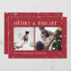 Un design moderne et festif pour vos salutations de vacances avec deux photos alignées côte à côte, sur un arrière - plan rouge canneberge classique parsemé d'étoiles. "Joyeux et brillant" apparaît en haut dans la lettre serif classique, avec "Bonnes Fêtes" votre nom de famille, et l'année le long du bas. Un design gai et coloré pour Noël 2021.