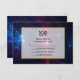 Carte RSVP de mariage avec une image d'imaginaire bleu, rose et noir de l'espace cosmique avec étoiles et nébuleuse. Un cadre transparent superposé avec une bordure dorée.