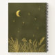 Une lune d'or croissant et quelques étoiles d'or ont l'air rêveuse sur ce journal vert foncé. Des herbes dorées et des fleurs sur le bord inférieur apportent une touche botanique sous le ciel nocturne. L'arrière - plan vert ressemble à un cuir luxueux. Ce journal est personnalisé avec un nom dans la typographie de script décontracté.