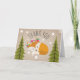 Carte de remerciements illustrant un renard qui se dresse sur une branche d'arbre entre deux arbres à feuillage persistant entourés d'étoiles. L'Arrière - plan est inspiré par le stock de carte. Des invitations assorties à des douches pour bébés sont disponibles à Jill's Paperie.