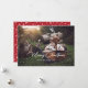 Cartes personnalisées rouges de Noël avec une couverture de neige et un beau titre de script festif sur le devant et étoiles sur un arrière - plan rouge clair à l'arrière. L'arrière - plan peut être changé en n'importe quelle couleur. Personnalisez facilement ces cartes rouges de Noël avec votre image et un nom de famille.