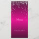 Menu - Étoiles en rose chaud. 100% Personnalisable. Prêt à remplir la ou les cases ou Cliquez sur le bouton IT de la PERSONNALISER pour modifier, déplacer, supprimer ou ajouter le texte ou les graphiques. Fabriqué avec des graphiques vectoriels haute résolution pour une impression professionnelle. REMARQUE : (Tous les modèles de produit zazzle sont des "impressions" sauf indication contraire) Si vous avez des questions sur ce produit, veuillez me contacter à siggyscott@comcast.net ou visiter mon lien de magasin : http://www.zazzle.com/magical_weddings?rf=238713599140281212 (Copier et Coller) Je serai heureux de vous aider. Merci pour le support et arrêt par mon magasin - Magical_Mariages.