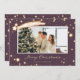 Cartes personnalisées de Noël violet avec étoiles sur un arrière - plan violet clair. Personnalisez facilement ces cartes de Noël avec votre image, votre nom de famille et votre texte.