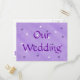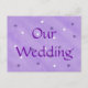 Une peinture d'étoiles violettes et blanches sur un arrière - plan de lavande mélangé, avec Notre Mariage, est imprimée sur les cartes postales. Ils sont faciles à customiser. Il y a des articles correspondants dans ce magasin. Merci pour faire du shopping à CherylsArt sur Zazzle.