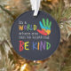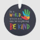 Un design puissant et tendance de typographie motivationnelle avec la citation "Dans un monde où vous pouvez être n'importe quoi, Be Kind" en couleurs arc-en-ciel avec une illustration manuelle de puzzle multicolore.