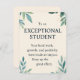 L'élève exceptionnel est une carte d'appréciation sincère conçue pour les éducateurs qui veulent reconnaître et célébrer les réalisations des élèves. Doté d'une aquarelle botanique douce aux feuilles verts et de taches d'or subtiles sur un arrière - plan beige chaleureux, cette carte offre un message d'encouragement et de positivité. Son libellé universel le rend adapté aux étudiants de tous âges et arrière - plans. Utilisée dans les salles de classe, les cérémonies de remise des diplômes ou les notes personnelles de reconnaissance, cette carte élégante aide les enseignants à express la gratitude et à inspirer la croissance continue.