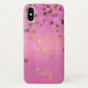 Étui chic pour iPhone X réalisé dans un aspect feuille rose avec des points de ton rose et or, sur le dessus. Personnalisez le texte, en bas de l'étui, pour répondre à vos besoins. Choisissez le style d'étui dont vous avez besoin avant de commander.