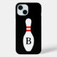 Étui iPhone 15 avec quille de bowling à monogramme personnalisé. Conception personnalisée pour le joueur de quilles. Créez votre propre cadeau cool pour les amis et la famille. Couverture personnalisée avec nom ou initiale.
