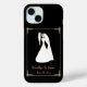 Étui iPhone de mariage de style Art Déco Great Gatsby noir et or orange avec texte modifiable