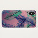 Étui avec dessin aquarelle de feuilles sur fond rose.