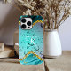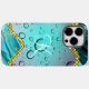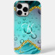 Étui Monogramme sarcelle feuille or Fantaisie gouttes de pluie Case-Mate pour iPhone 14 Pro Max.