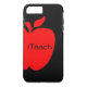 Étui élégant pour iPhone 7 Plus pour enseignant(e), réalisé en noir, avec une grande pomme rouge sur le côté gauche. Le texte noir indique iTeach et est entièrement personnalisable selon vos préférences.