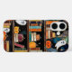 Cozy et ludique, cet étui de téléphone présente une bibliothèque d'Halloween remplie de livres, de citrouilles et de fantômes mignons dans un design inspiré du vitrail.