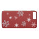 Des flocons de neige scintillants illustrés sur un fond rouge de Noël décorent cet étui pour iPhone 7, ce qui en fait le cadeau idéal pour les fêtes.