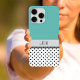 Étui pour smartphone tendance et mignon pour iPhone créé avec un espace de monogramme pour votre nom ou vos initiales et un motif à pois élégant