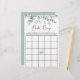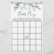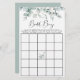Élégante feuille de jeu de bingo de bingo avec des aquarelles vert sauge eucalyptus vert et "bingo de la nuptiale" dans un script élégant. Personnalisez les instructions du jeu et ajoutez le nom et la date de douche de la future mariée au dos.