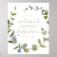 Bienvenue dans votre baby shower avec ce panneau d'accueil, avec l'aquarelle eucalyptus et la verdure.