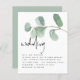 Eucalyptus Invitation De Mariage De Script Informel. Un prix économique PETIT 4,5 po x 5,6 po alternatif. Disponible dans un STOCK CARTE SEMI GLOSS 110 lb qui est l'option par défaut (recommandé pour les invitations, similaire à l'épaisseur d'une carte postale), OU un STOCK PAPIER THINNER SATIN FINISH 80 lb (idéal pour les boîtiers). Les enveloppes sont en option et légèrement plus grandes que la taille de la carte. L'eucalyptus couleur vert ARtsy s'écoule sur le dessus et un élégant style de set informel pour l'en-tête avec tous les détails élégamment petit en dessous. Personnalisez facilement vos informations.