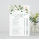 Cette belle aquarelle moderne eucalyptus avec or Guess Who? nuptiale feuille de jeu est parfait pour toute douche. Ce jeu amusant et facile est sûr d'apporter beaucoup de rire à toute douche nuptiale! Il va certainement briser la glace et faire parler et rire tout le monde. Donnez simplement un drap à chaque invité (n'oubliez pas les stylos) et laissez le plaisir commencer! Vous serez étonné du nombre de personnes qui connaissent les réponses. Pour faire de ce jeu de douche nuptiale votre propre sélection Personnalisez ce modèle et tapez le nom de la mariée et le nom du marié.