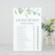 Cette simple, minimaliste, moderne eucalyptus Guess Who? nuptiale feuille de jeu de douche est parfait pour toute douche. Ce jeu amusant et facile est sûr d'apporter beaucoup de rire à toute douche nuptiale! Il va certainement briser la glace et faire parler et rire tout le monde. Donnez simplement un drap à chaque invité (n'oubliez pas les stylos) et laissez le plaisir commencer! Vous serez étonné du nombre de personnes qui connaissent les réponses. Pour faire de ce jeu de douche nuptiale votre propre sélection Personnalisez ce modèle et tapez le nom de la mariée et le nom du marié.