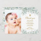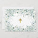 Fleurs blanches et Croix d'orInvitation de bébé fille Baptême personnalisée et abordable. Ce joli design a une aquarelle vert feuille avec texte doré. Le côté inverse a une croix d'or avec des fleurs d'aquarelle ou utilisez l'espace pour ajouter du texte et des photos supplémentaires. Cliquez sur Customiser pour choisir une couleur arrière - plan et modifier les polices et les couleurs du texte.