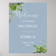 Cet élégant panneau d'accueil mariage bleu foncé et botanique d'eucalyptus peut être personnalisé avec vos informations dans la typographie chic. Conçu par Thisisnotme©