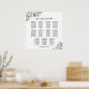 Ce tableau rustique de 11 places mariage comprend l'assignation de tables pour 110 personnes avec 10 places par table. L'élégant design boho chic présente une aquarelle peinte à la main, des feuilles d'eucalyptus, du feuillage et de la verdure dans les tons menthe, mousse et vert sauge. Le titre de calligraphie du script de dentelle dit : Veuillez trouver votre table, et les noms du couple et de la date mariage apparaissent en bas. Une façon merveilleuse d'aider vos invités à trouver leurs sièges tout en ajoutant élégance et style à votre réception.