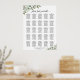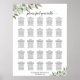 Ce tableau de 25 places mariage est rustique, élégant et beau. Il présente un design chic boho peint à la main avec des feuilles d'eucalyptus aquarelle, de la verdure et du feuillage de jardin dans les tons de mousse de menthe et de vert sauge. Le titre de calligraphie du script de dentelle dit : Veuillez trouver votre table, et les noms du couple et de la date mariage apparaissent en bas. Ce tableau traditionnel a des places assises pour 250 personnes avec 10 places par table.
