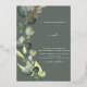 Eucalyptus Verdure et huile d'or Aquarelle botanique Succulente Emerald Green Spring Wedding Invitations on White arrière - plan - comprend une belle et élégante typographie script avec feuilles botaniques modernes et verdure pour la célébration spéciale de mariage.