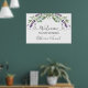 Cette conception présente une aquarelle illustrant le feuillage d'eucalyptus et les fleurs de lavande violette.