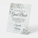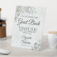 Ce magnifique panneau de piédestal fera invitation vos invités mariages à signer votre livre d'or. Décoré dans un style boho chic rustique avec des sprigs peints à la main de feuilles d'eucalyptus aquarelle et des fleurs de lavande dans les tons vert sauge et violet clair. Il y a de la place pour les noms du couple ainsi que la date du mariage.