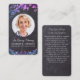 Cartes de prières funéraires Rustiques Eucalyptus Sympathy. Cette carte de prière commémorative rustique mais élégante présente une végétation d'eucalyptus rose violet bleu sur le motif en ardoise de tableau noir. Avant "In Loving Memory" Personnalisez cette carte de prière funéraire commémorative avec vos proches photo, nom & dates, et sentiment. Retour ~ Poème 'Puissiez-vous toujours marcher dans Sunshine', qui peut être personnalisé, s'il vous plaît tendre la main si vous voulez un design avec un poème spécifique autre que. Cette carte de prière commémorative sera un souvenir précieux, pour les services funéraires et la célébration de la vie. DROIT D'AUTEUR © 2020 Judy Burrows, Black Dog Art - Tous droits réservés. Carte de prière funéraire de la photo commémorative du film rustique