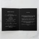 Un programme élégant de 4 pages. Un arrière - plan noir et des sprigs d'eucalyptus dorés à l'eau. Espace pour votre photo sur le devant. Personnalisez et ajoutez le nom, les dates et votre texte.