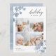 Partagez vos voeux de vacances avec ces cartes de collage photo chic de Noël avec quatre de vos photos carrés préférées encadrées en haut et en bas par des feuilles d'eucalyptus aquarellés en bleu pastel. "Vacances désirées" apparaît en haut à droite dans un élégant mélange de calligraphie et de lettres modernes, et l'année est soigneusement cachée dans l'un des feuilles. Personnalisez avec votre nom de famille en bas à gauche.