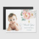 Bébé Photo Merci Baptême / Carte Christening. Ce dessin présente une illustration de fleurs d'eucalyptus, de pivoines et d'anémones en aquarelle. En haut il y a une image de croix.