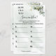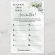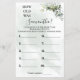 Quel âge avait l'Épouse ? Version anglaise et espagnole inclus (avant et arrière). Ajoutez le nom de la mariée dans le modèle pour les versions anglaise et espagnole. Pour plus de personnalisation (modifier le libellé, ajouter ou supprimer le nombre de photos, la couleur de police, le style de police ), cliquez sur personnaliser, faites défiler et cliquez sur le lien "cliquer pour customiser plus loin". COMMENT JOUER : Affichez les photos de la future mariée et numérotez-les. Les clients notent leur devinette sur chaque photo et la personne qui a les réponses les plus correctes gagne !
