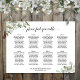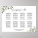 Ce magnifique tableau de sièges mariage présente des ressorts d'aquarelle peints à la main de feuilles d'eucalyptus et de verdure dans les tons menthe, mousse et vert sauge. L'aménagement traditionnel comprend 8 tables ou 80 places avec 10 places par table. Le titre dit : "s'il vous plaît trouvez votre table" dans une calligraphie de script dentée avec les noms du couple et la date mariage ci-dessous. Une belle façon d'aider vos clients à trouver leurs tables à la réception tout en ajoutant une touche de style.