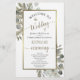 Ces programmes de mariage sont élégants et de bon goût, tout en étant toujours à l'aise avec le budget. Le design se compose d'un cadre doré à faux papier avec des ressorts aquarelles peints à la main de branches de pin et de feuilles d'eucalyptus dans des tons muets de vert sauge, gris et or. La typographie présente une calligraphie de script dentée, et il y a de la place pour des détails sur la cérémonie, la fête de la mariée, et un bref merci.
