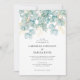 Ce faire-part de mariage présente une belle aquarelle graphique d'eucalyptus bleu turquoise clair accentué d'or botanique.