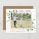 Réservez la date! Annoncez votre mariage à vos amis et votre famille avec ces feuilles d'eucalyptus, photo moderne enregistrer les cartes de date. Ces cartes de faire-part de mariage budgétaires ont une option d'enveloppe. Customisez avec votre photo de fiançailles préférée, et personnalisez avec les noms, la date du mariage, l'emplacement. Ajoutez le site Web et toute autre information au verso. Ce mariage botanique unique sauve les cartes fera une impression durable, vos invités s'assureront de sauver la date! DROIT D'AUTEUR © 2020 Judy Burrows, Black Dog Art - Tous droits réservés. Budget Eucalyptus Feuilles Photo Enregistrer la date