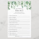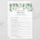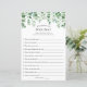 Qui connaît le mieux la mariée ? Carte de jeu de douche nuptiale avec cascade d'aquarelle de verdure et de fleurs rousses.
