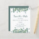 Réservez la date! Annoncez votre mariage à vos amis et votre famille avec ces budget rustique mais moderne blanc et eucalyptus enregistrer les cartes de date. Ces cartes de faire-part de mariage budgétaires ont une option d'enveloppe. Personnalisez avec les noms, la date du mariage, l'emplacement. Ajoutez toute autre information au verso. Ce mariage unique en matière de verdure sauve les cartes et fera une impression durable, vos invités s'assureront de sauver la date! DROIT D'AUTEUR © 2020 Judy Burrows, Black Dog Art - Tous droits réservés. Budget Mariage Eucalyptus Vert Économisez La Date