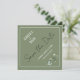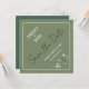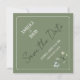 Carré moderne Sauvez la date, propre et minimaliste avec eucalyptus, verdure et une palette de couleurs vertes. Sangez à l'avant et foncez vert olive à l'arrière. Le devant a tout le texte en 45° pour le rendre plus intéressant et mémorable. Une ligne blanche étroite comme un cadre avec une seule branche d'eucalyptus dans le coin inférieur. Ce design propre est facile à adapter à n'importe quel thème et palette de couleurs. Mélangez et faites correspondre votre événement spécial. Facile de Customiser votre texte à l'avant. Différentes formes d'angle disponibles.