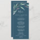 Cette carte de menu pour dîner à l'eucalyptus bleu violet et vert est parfaite pour un mariage extérieur moderne. Le design botanique sobre et élégant présente une verdure aquarelle aux accents de lavande et de violet foncé sur un arrière - plan bleu marine. Ce menu peut être utilisé pour une réception de mariage, un dîner de répétition ou tout événement.